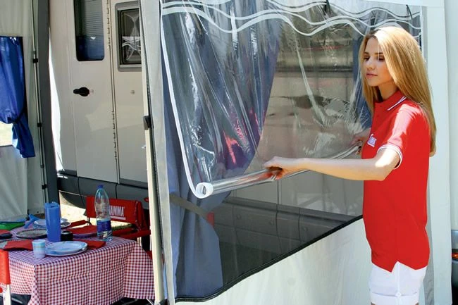 The Caravanstore is great for short holidays and weekend trips away. Its ideal use is in fair weather, as it provides shade and shelter from the occasional shower. It can be put up and taken down in a few moments, a lot faster than traditional full or porch awnings. With the Caravanstore Sip you can double your living space and bring in more light through its large windows. The Caravanstore Zip is built around the original Caravanstore but with the inclusion of two YKK zips sewn into the outer vinyl roof fabric, which zip to the Privacy Room side panels. Side panels are suported by the use of two telescopic aluminium roof rafters, which also incorporate two tensing legs for additional support. The front panel is supported by a ‘C’ channel and has an independent doorway, which can be installed to the left or the right hand side according to personal preference. Finally, the entire front can be rolled up or simply removed. With plenty of pegging points and a deep mudwall for maximum adjustment, the Caravanstore Zip is a great buy for any trip.
