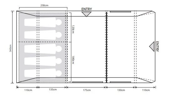 All of Outdoor Revolutions Footprint groundsheets are cut-to-size, therefore the dimensions of the footprint are the same as the floor dimensions of the product it is fitting