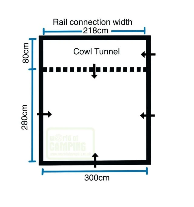 The addition of twin piping enables compatibility with both caravans and motorhomes, within the corresponding height range. Large PVC windows permit an excellent, crystal-clear vista of the outside world, whilst illuminating the interior throughout the daytime, enabling you to encapsulate the great outdoors, from indoors, during adverse weather conditions; these are accompanied by zip-in curtains, which can be zipped out and rolled back, or zipped fully in for complete privacy at night.