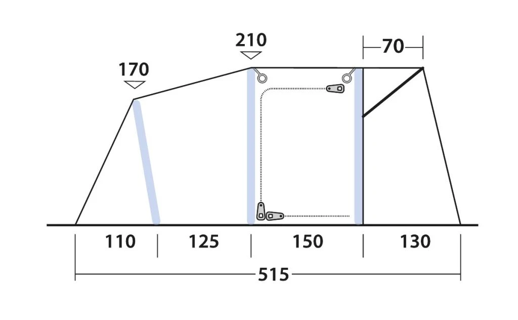 - Heavy duty Outwell zips are easy to use, running securely and freely