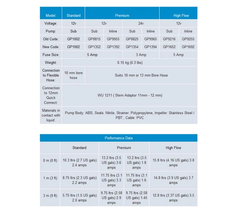 High Flow Pump (15.8 lpm / 3.8 amps / 1.4 Bar).